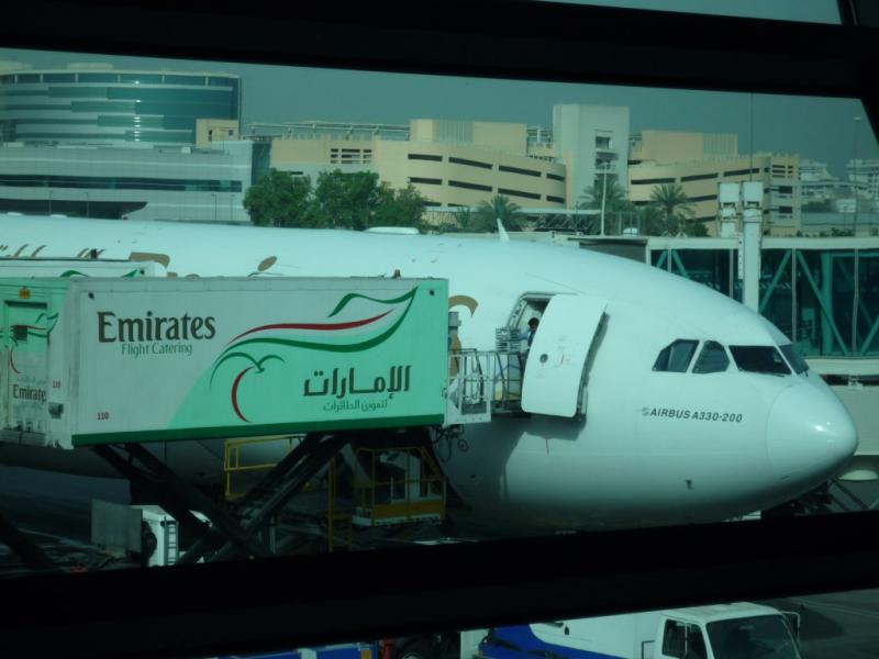 ドバイ国際空港到着. セキュリティチェックを受けて, 乗り継ぎのため 出発ゲートへ. 相変わらずというか, 以前来たときよりも人が多い. 座る場所を探すだけで一苦労. 無線LANが無料で使えるので, PCをネットに 接続して時間を潰す. しかし, 利用者が多すぎなのか, 回線遅すぎる.