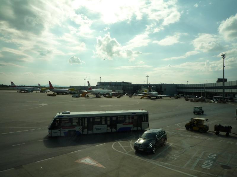 ウィーン国際空港到着. 予想よりもこぢんまりとした空港. 座るところも 少ないので, 仕方なく, 空港内のレストランでピザ & 水で時間を潰す. しかし, ユーロ高い! ピザ1カットとミネラルウォータで, 1,000円くらい….