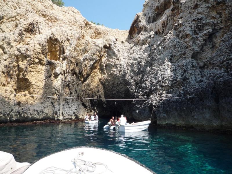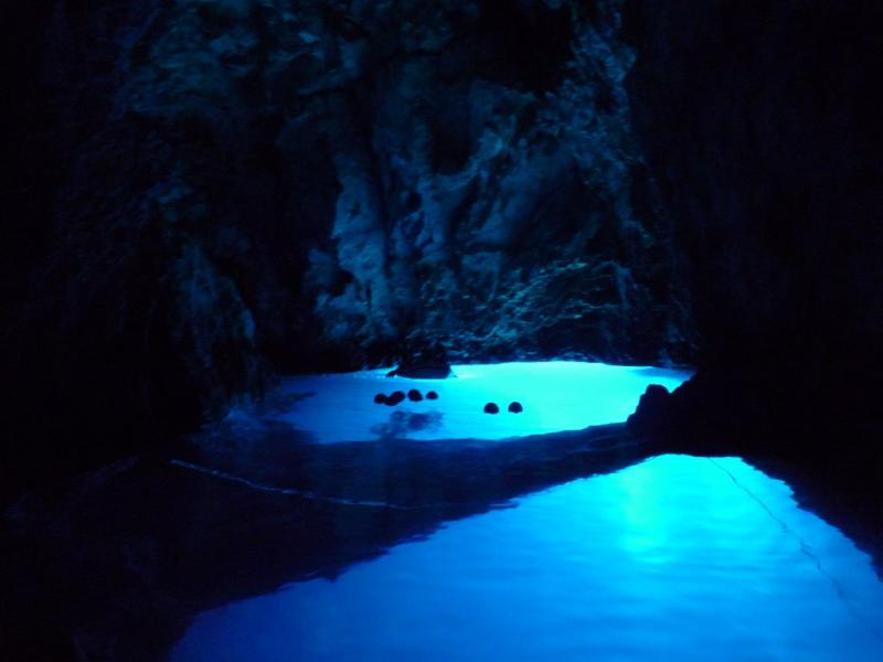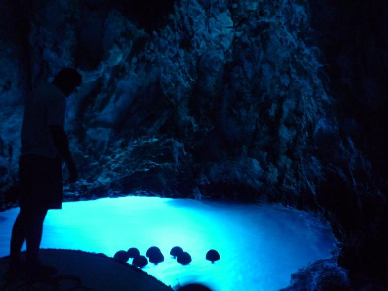 小型ボートに乗り換えて, 青の洞窟へ向かう. 5分くらいで青の洞窟到着. 洞窟の中では5分くらい滞在. 短い!