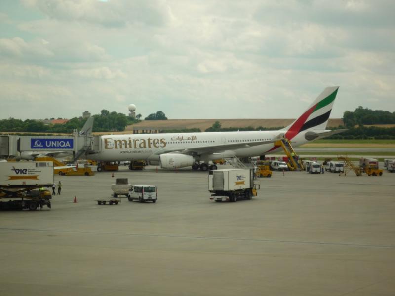 EK128便ドバイ行き搭乗開始. 定刻に出発.