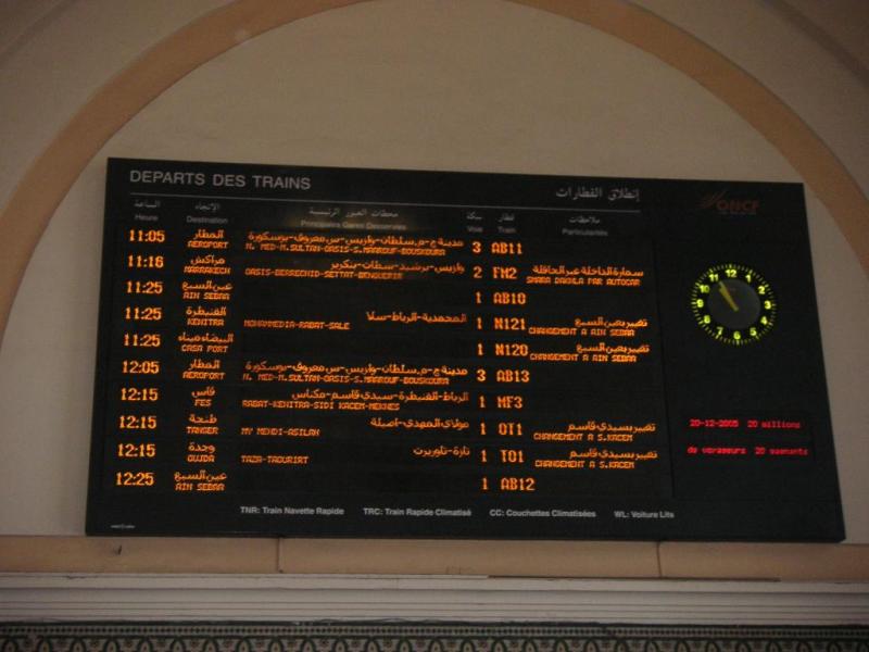 マラケシュ(Marrakech)までに切符を購入. 2等車で 75.50DH なり. 電車は若干遅れていて11:25 頃乗車.