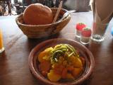 ジャマ・エル・フナ広場近くのレストランでチキンのタジンを食べる. かなりの量でお腹いっぱい.