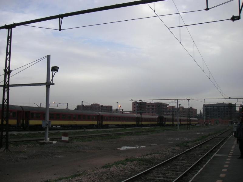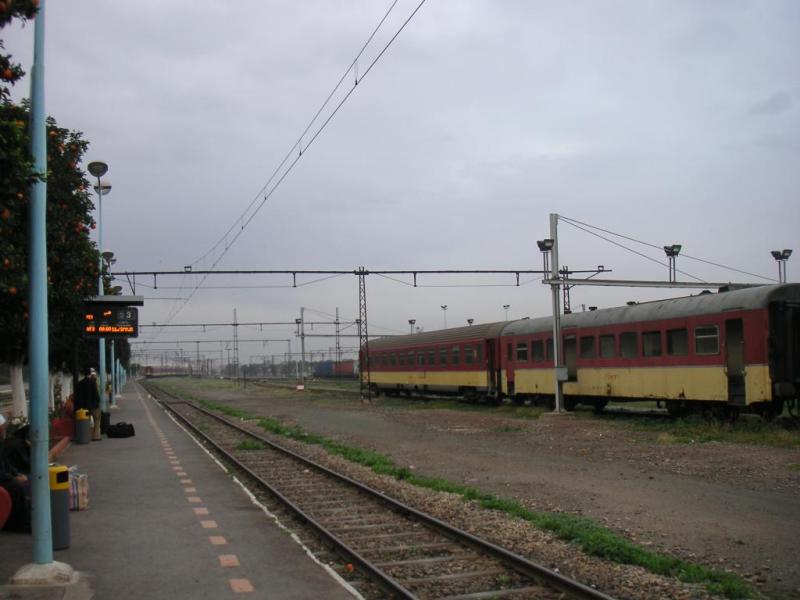マラケシュ駅到着. フェズ行きのチケットを購入. 2等車で 171.00DH. 9:00 マラケシュ発の電車に乗車. かなり混雑していて窮屈.