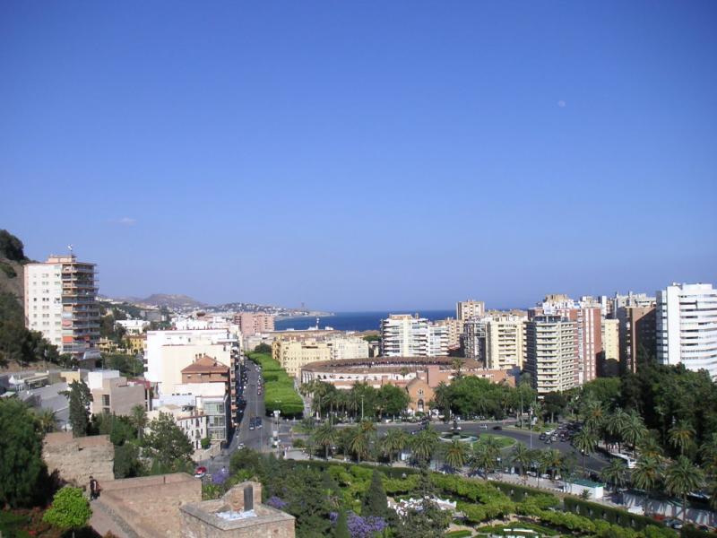 バスに乗車. なかなか綺麗で快適なバス. 二人掛けを一人占めできた. ミネラルウォータも「ご自由にお取りください」状態. 郊外に出ると、オリーブ畑が続く. 昼すぎに一度休憩があって、 16:30頃にマラガのバスターミナル到着. マラガは思っていたよりも大きな街.