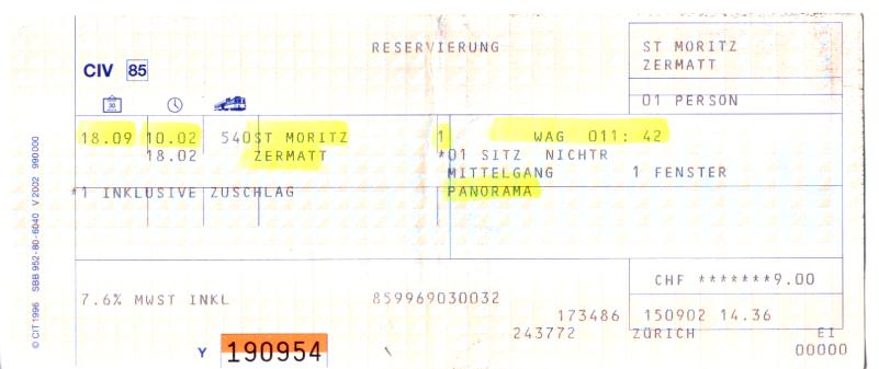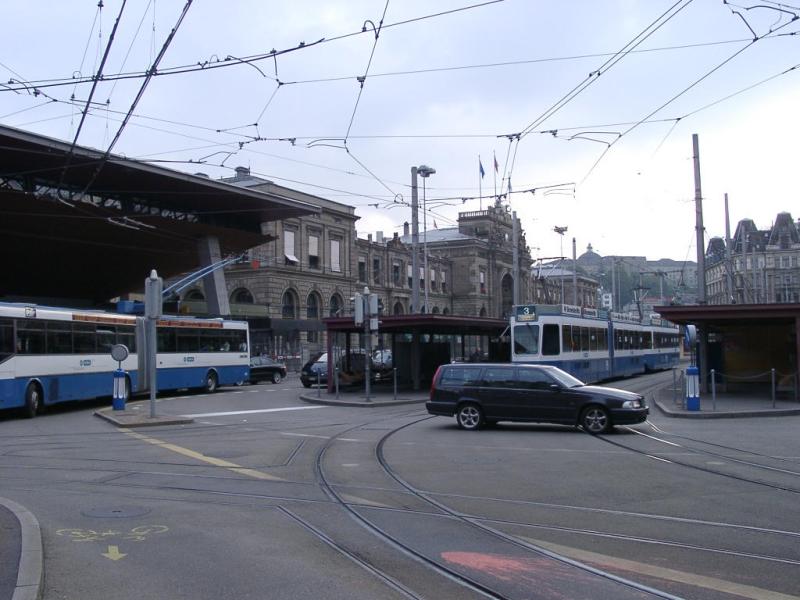 中央駅構内の切符売場で, 後日サンモリッツから乗車予定の Glacier Express (氷河特急)の予約をする. トラムでホテルへ.