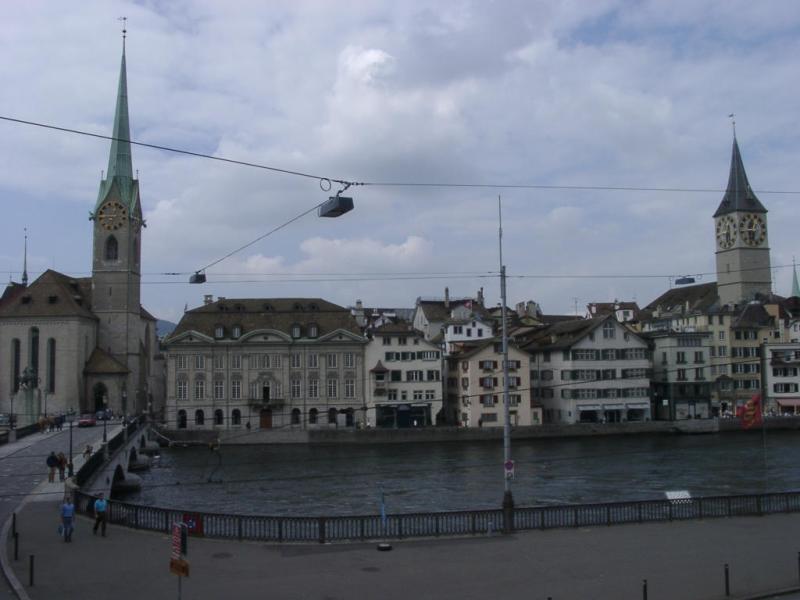 チューリヒ中央駅到着. 駅構内で 30,000[JPY] + 35[EUR] を Switzerland Franc へ両替. Tourist Information で行く予定の街のパンフレットを入手. 切符売場の前で, 無料の各種時刻表を入手. スーツケースをコインロッカーへ預け, 市街散策へ.