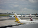 空港到着. チェックインしようとするが、チェックイン待ちの列が 長い!!! 40分くらい待って、やっとチェックイン. しかし、フランクフルト までしかチェックインできず.